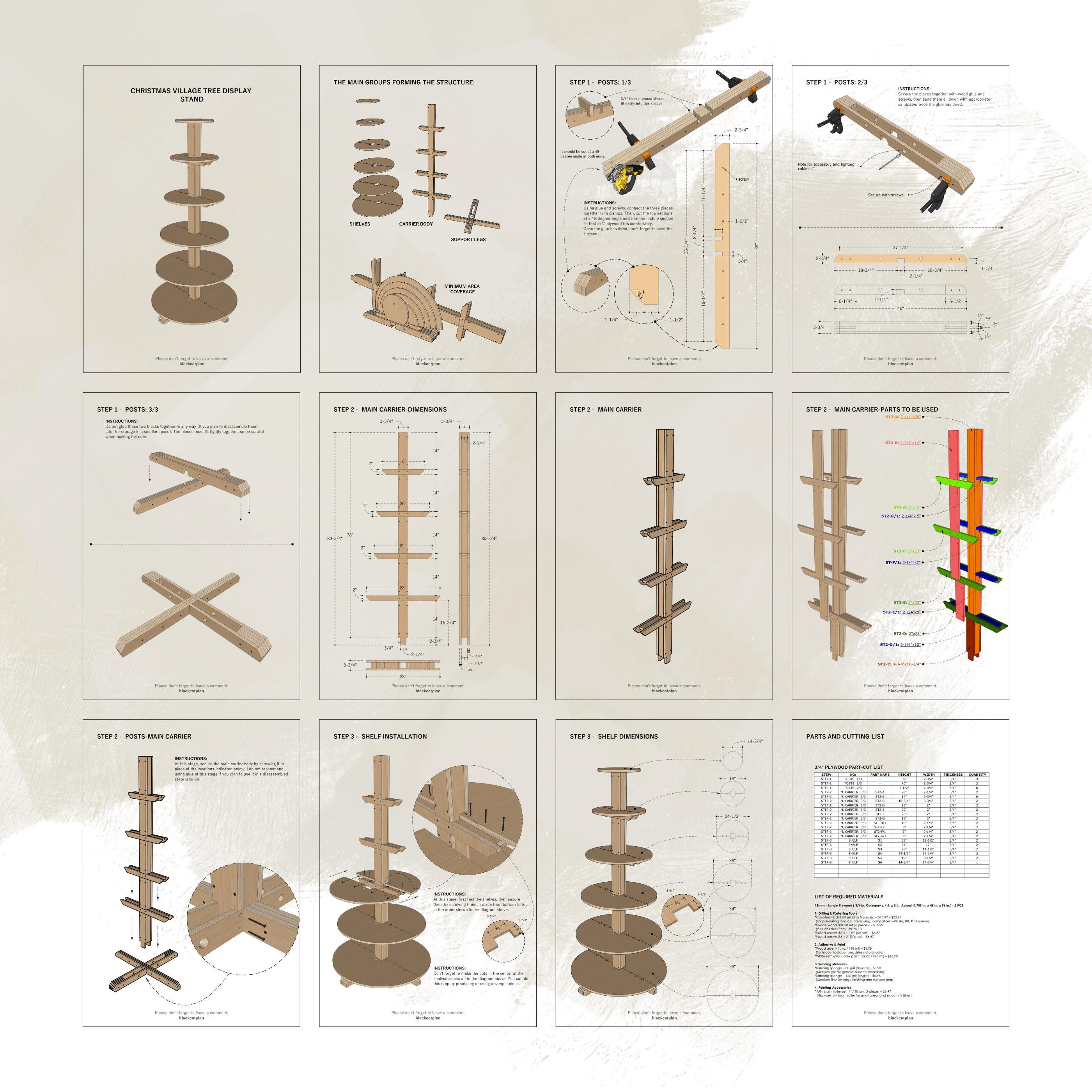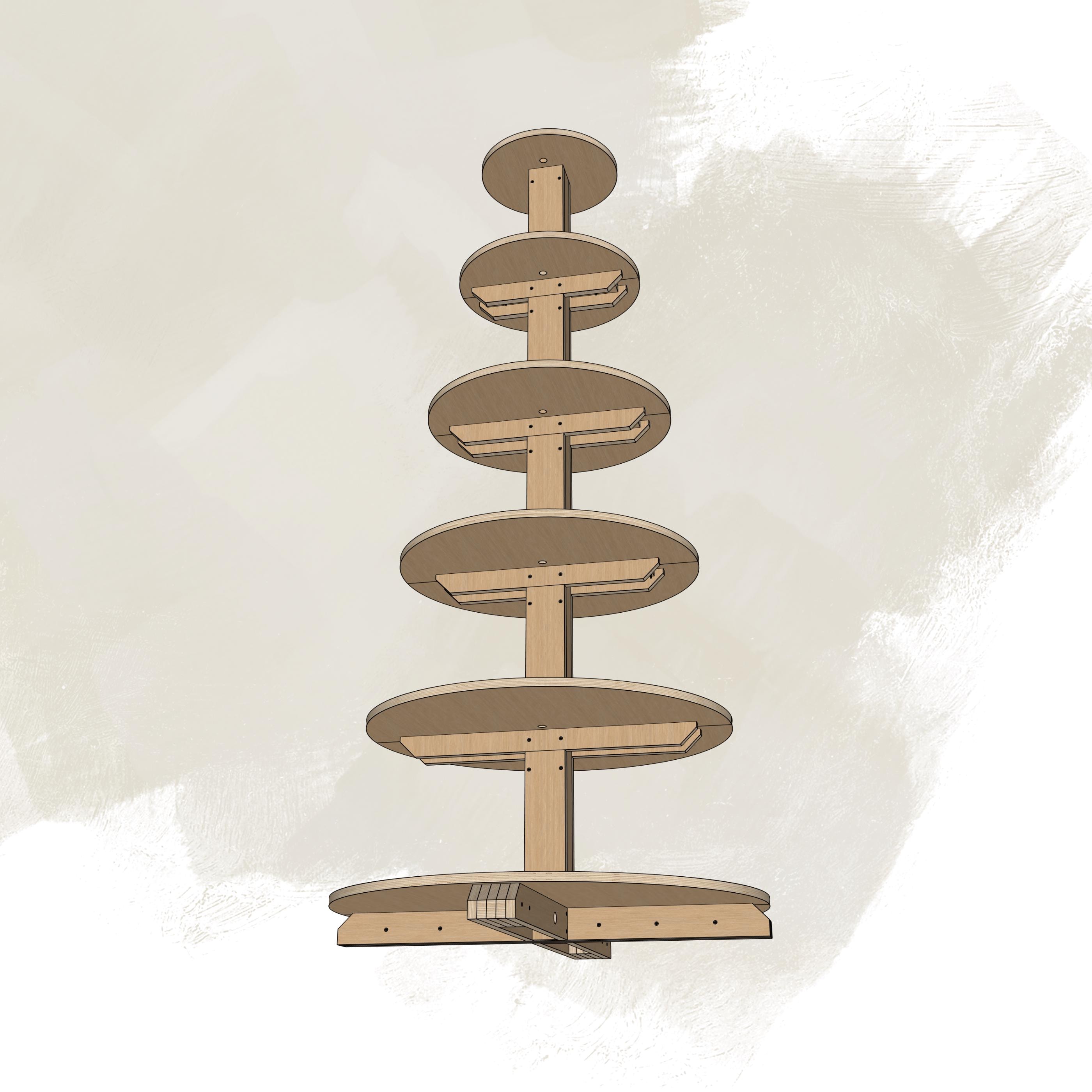 With this detailed digital woodworking plan, you can easily create a beautiful and sturdy display tree, standing about 81.5 inches (208 cm) tall, using only 3/4" (18 mm) plywood.