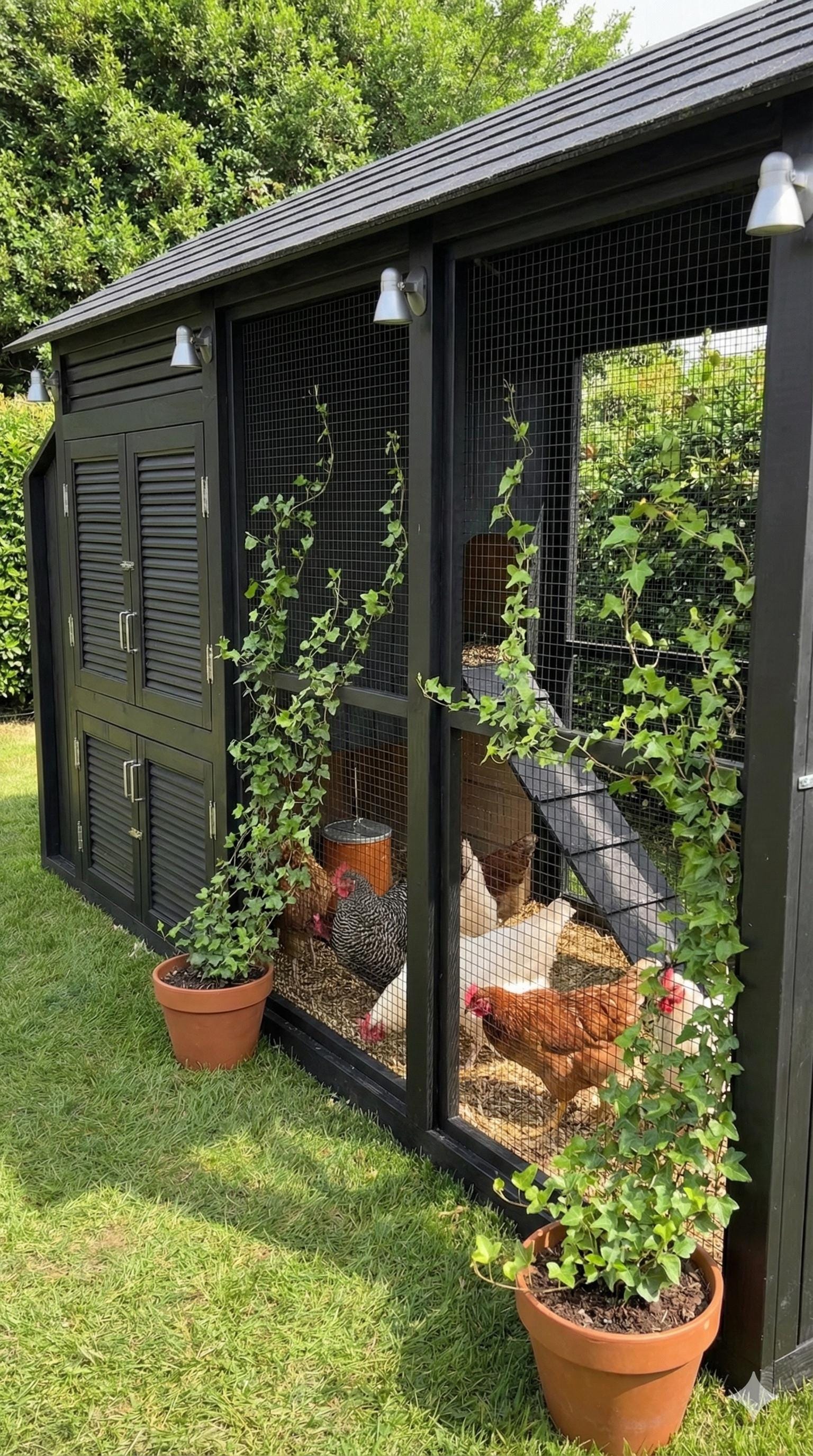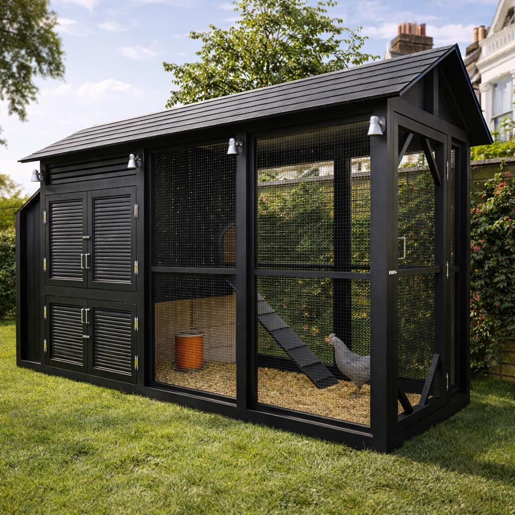 This coop is designed to comfortably house up to 10 - 15 chickens.
