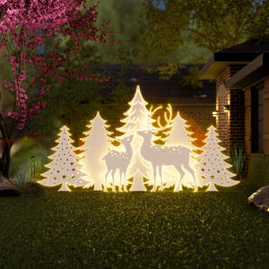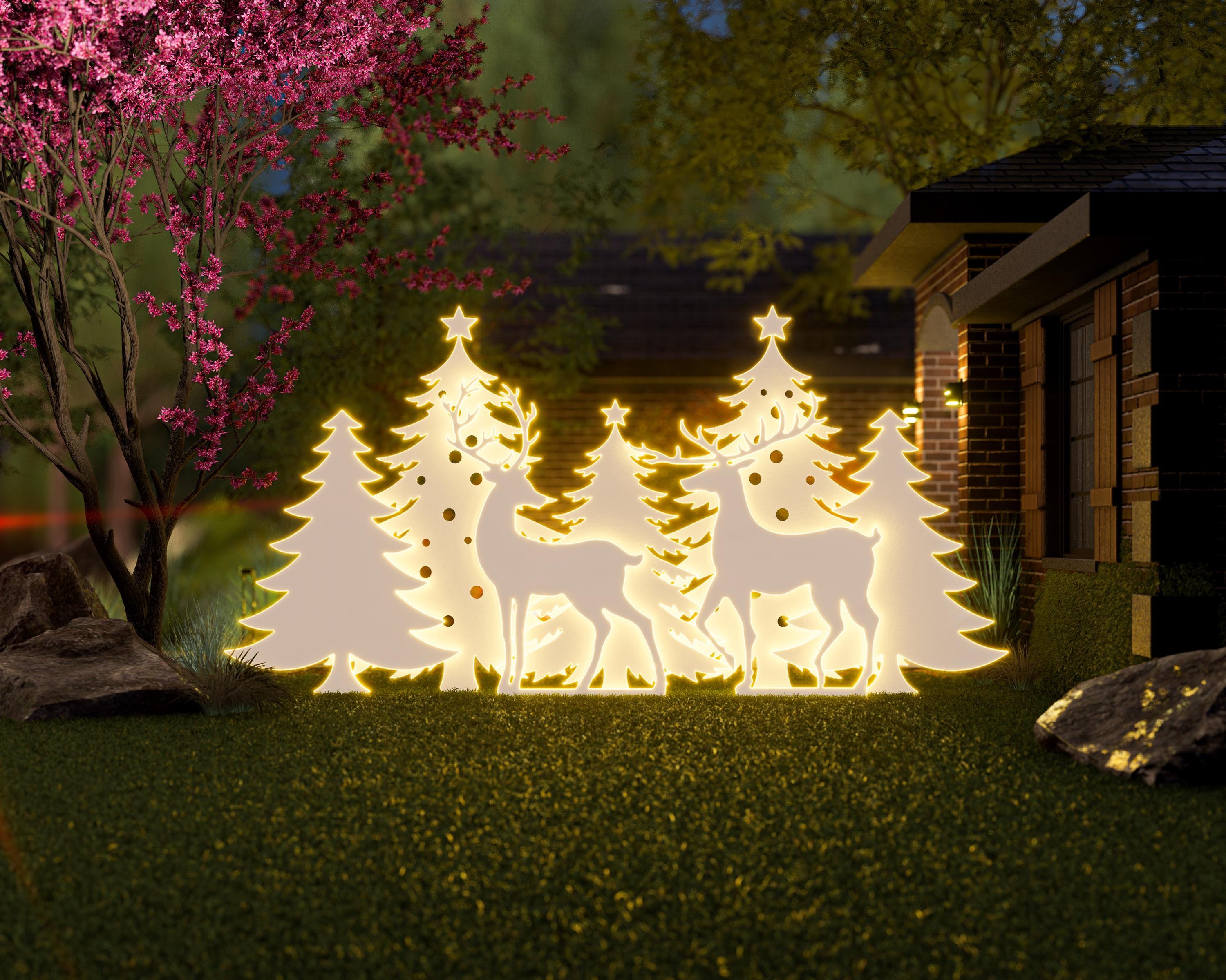 DIY Reindeer and Christmas Tree Silhouettes, Garden Decor - Santa and Deers - Outdoor Christmas Stencils Yard Decor Christmas Decoration