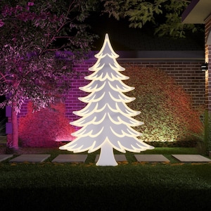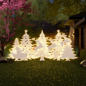 This 5ft Christmas tree template, outdoor holiday yard art stencil, and festive silhouette decor is designed to help you create a medium-size Christmas tree cutout for your yard display. Perfect for adding a magical touch to your garden or front yard. Simply print the stencil, join the pages, trace onto plywood or MDF, cut, paint, and add LED lights for a glowing Christmas decoration.