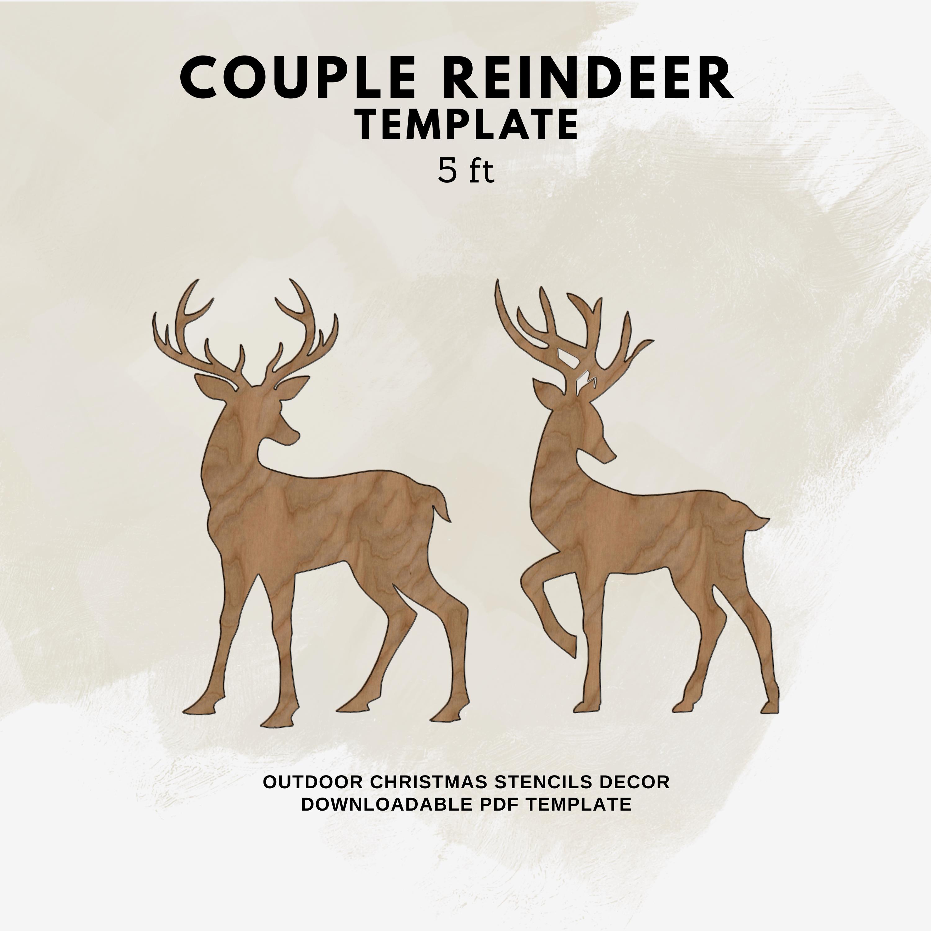 5ft Couple Reindeer Template, Outdoor Christmas Yard Art Stencil, DIY Silhouette PDF DXF