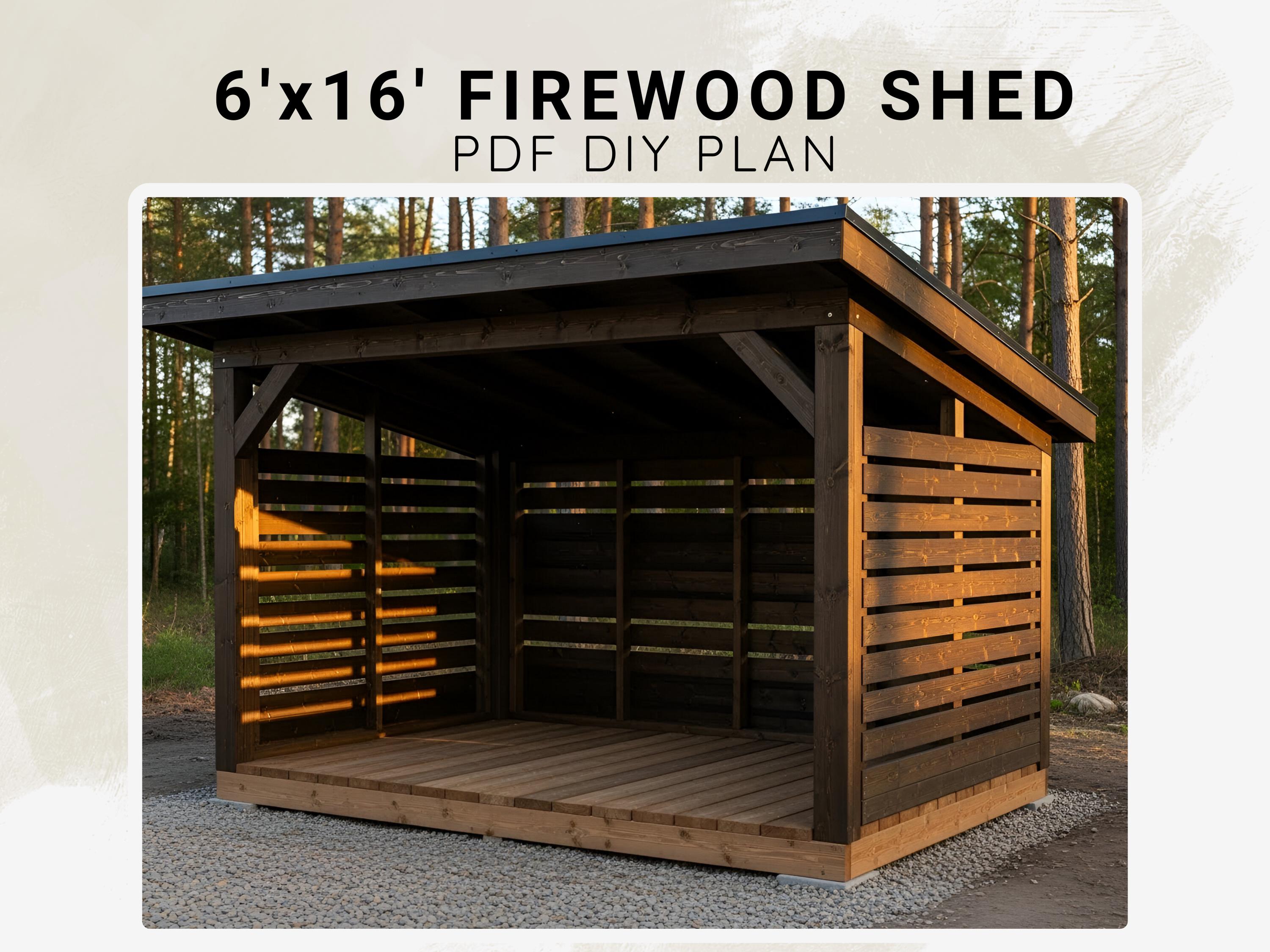 This is the complete 6x16 Firewood Shed DIY Plan, including everything you need to build a strong, beautiful and practical firewood storage shed. All measurements are in Imperial units and the instructions are written in a clear and beginner-friendly way. These plans are designed to minimize waste and save both time and materials. You can also customize the design to suit your own outdoor space or style.