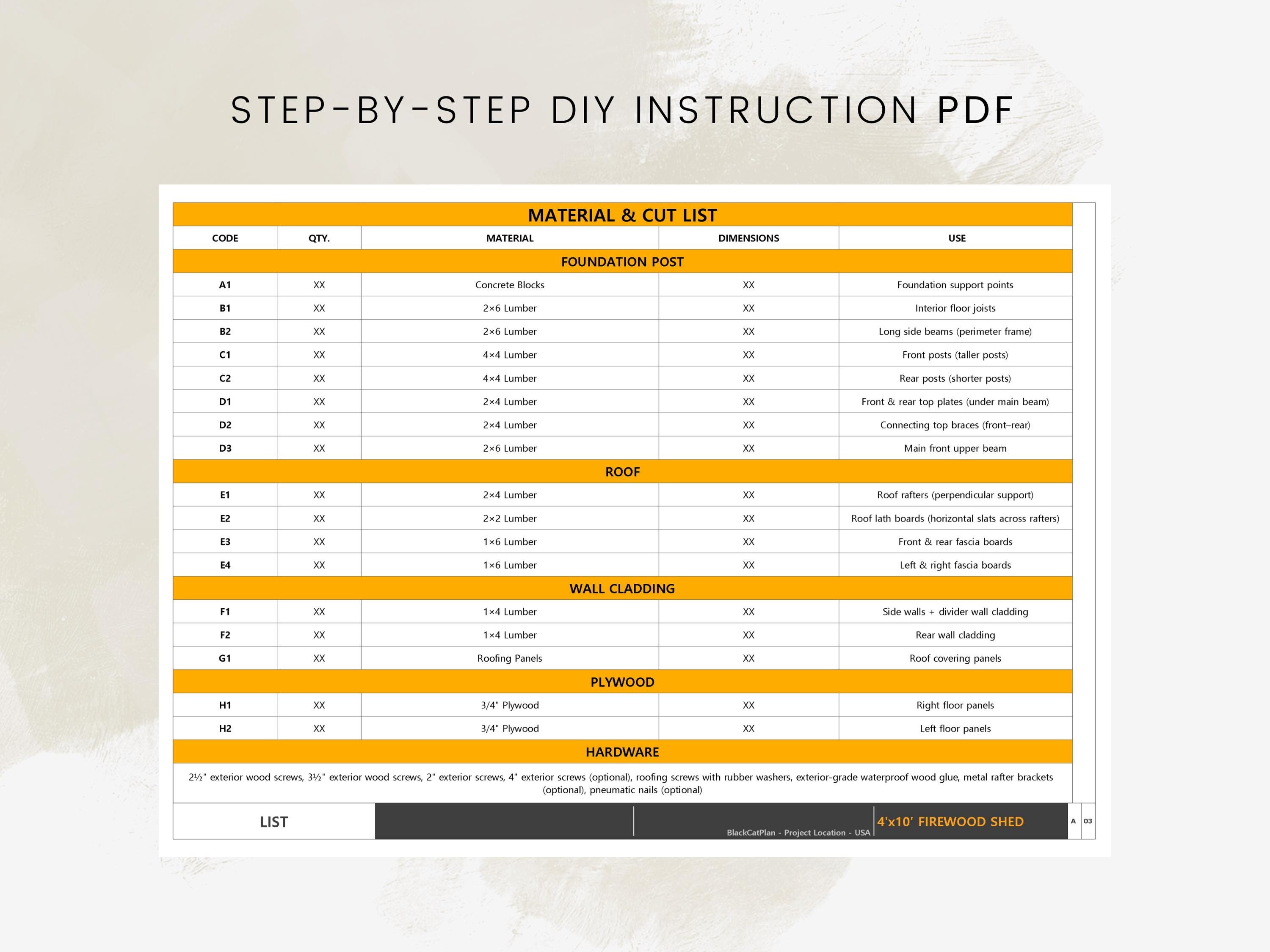 Yes, there is a list of materials to be used in all plans.