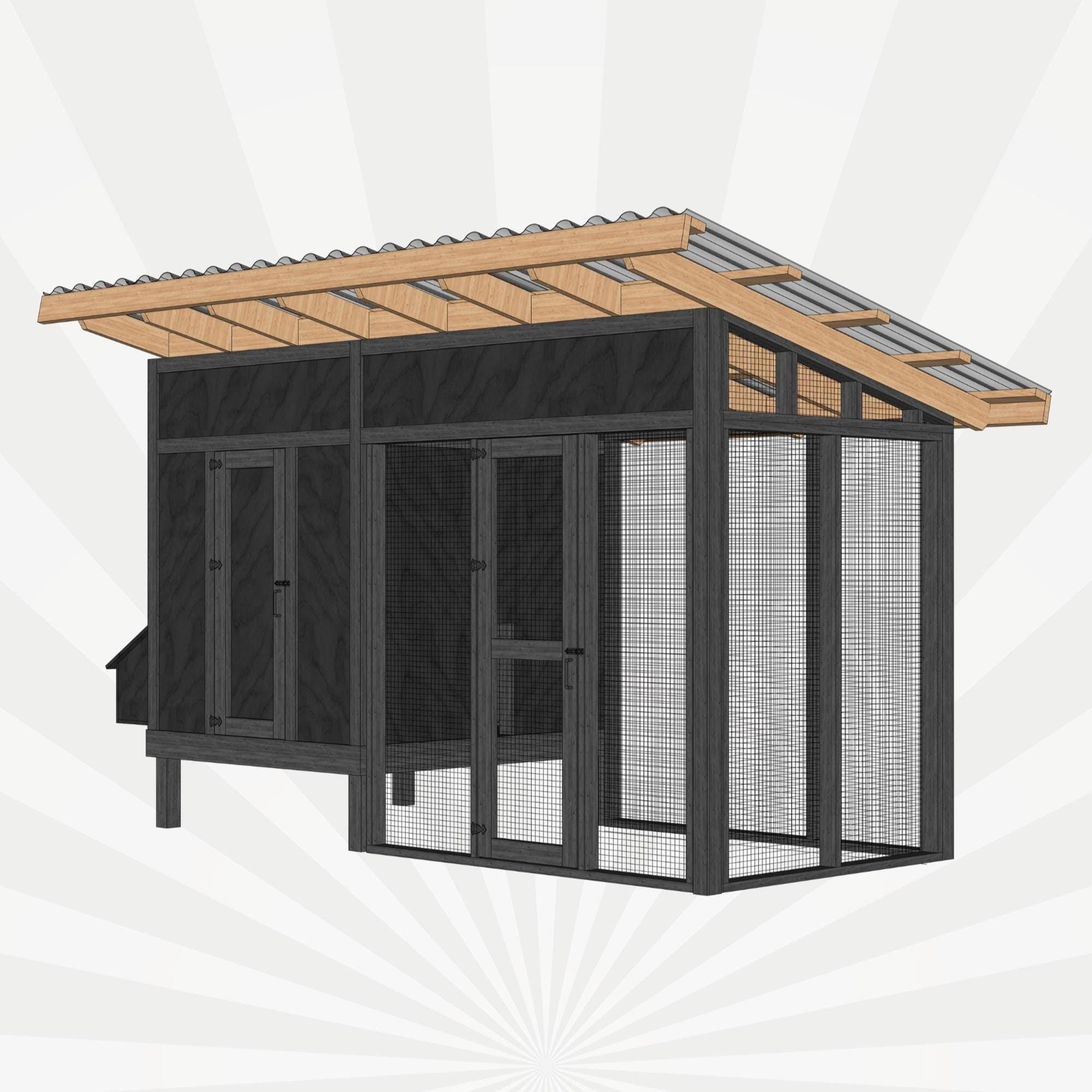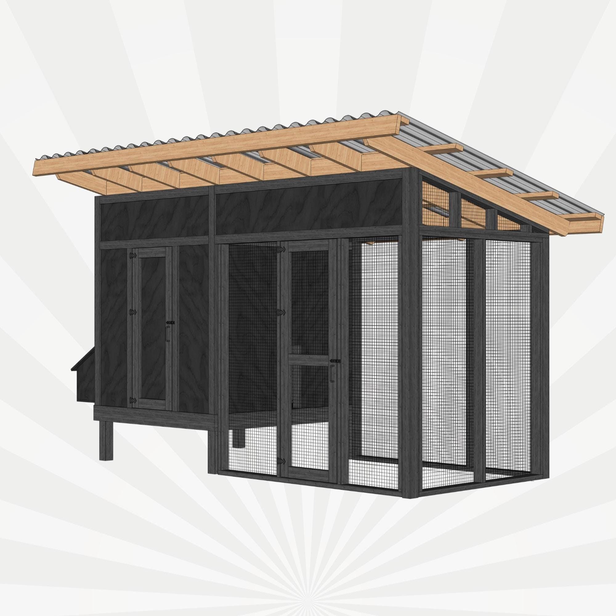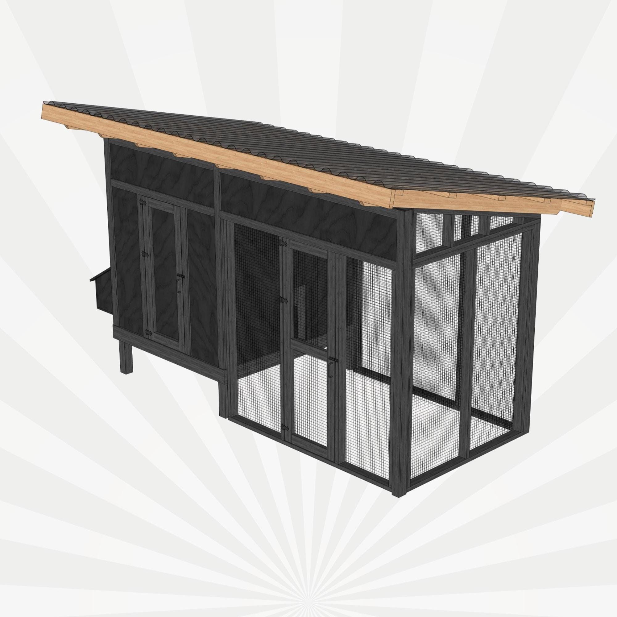 Large Modern Chicken Coop Plans: 6x14 Backyard Coop with Run, Nest Box (PDF Download)